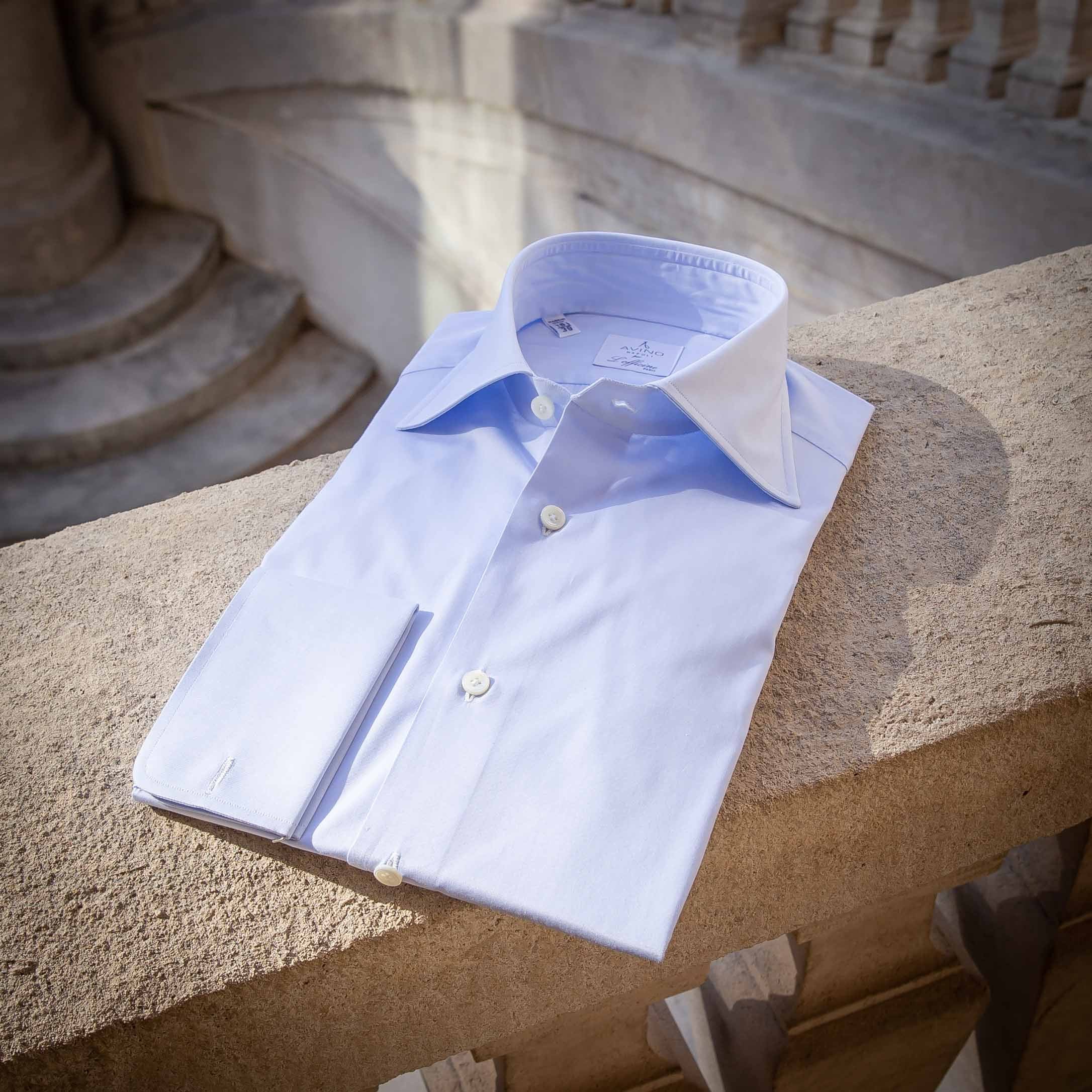 Chemise poignet mousquetaire bleu ciel