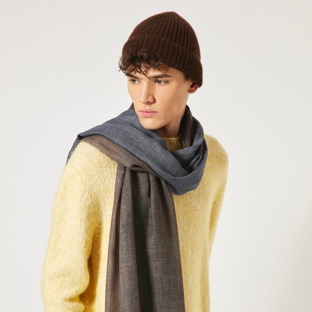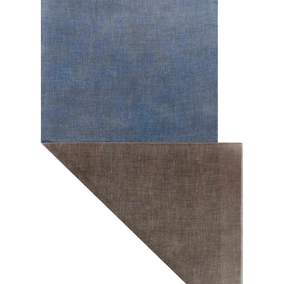 Écharpe double face bleu denim/marron chocolat voile de cachemire