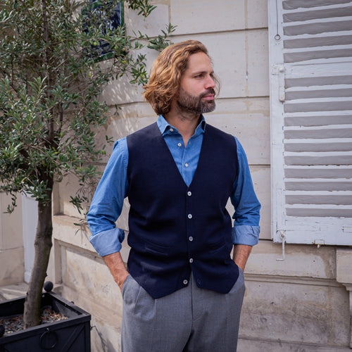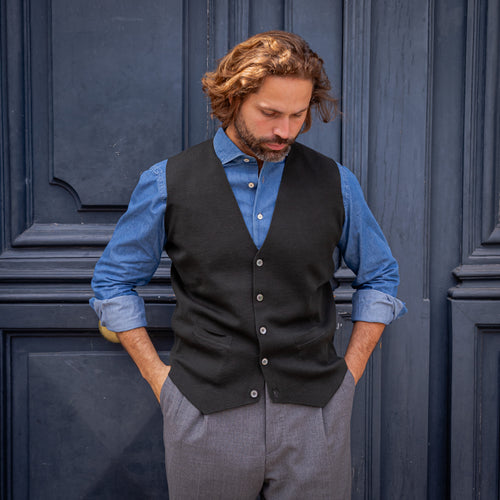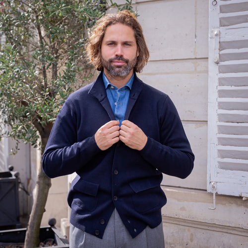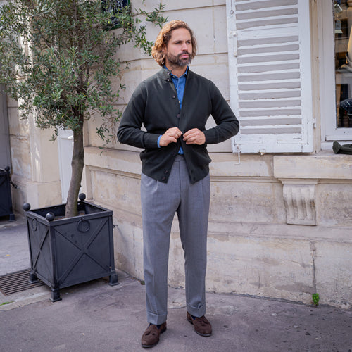 Veste napolitaine hivernale motif pied de poule laine lin et soie