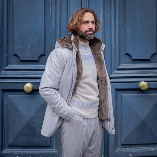 Parka fourrure amovible laine et cachemire imperméable Loro Piana beige clair