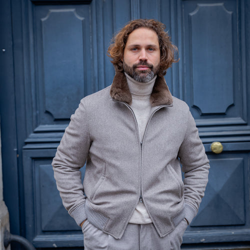Blouson en cachemire impermeable Loro Piana (Rain System) chevron beige clair