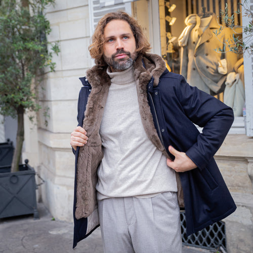 Parka fourrure amovible laine et cachemire imperméable Loro Piana bleu marine